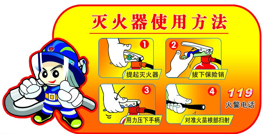 3、使用前,先把滅火器上下顛倒幾次,使筒內(nèi)干粉松動(dòng)。