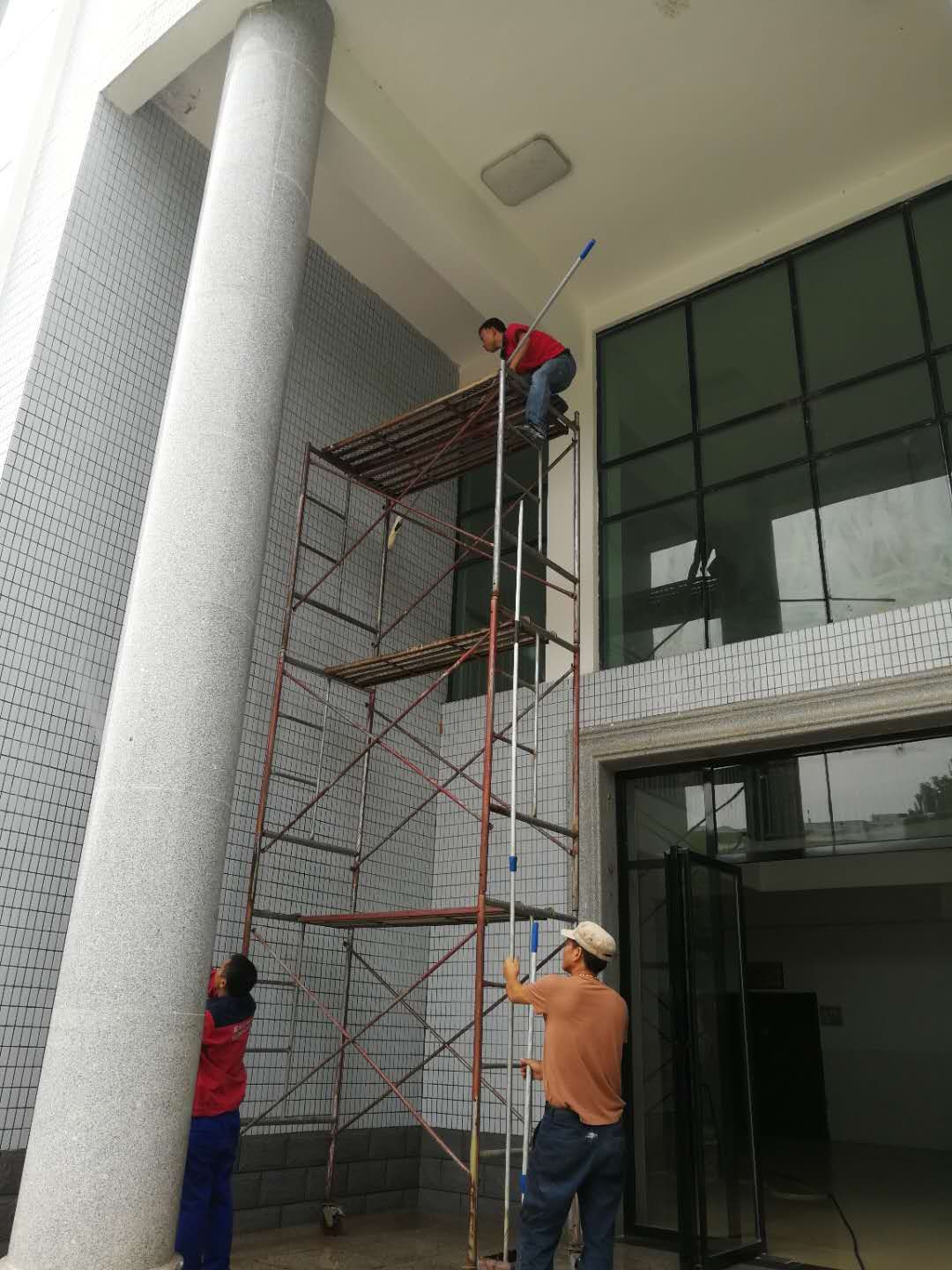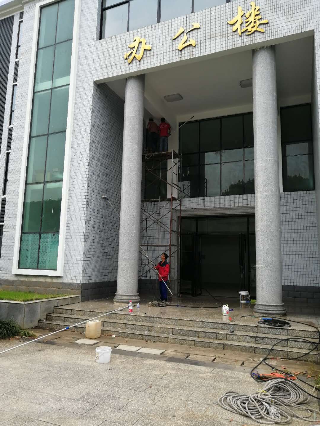 衡陽市一中華岳分校由天成家政辦公大樓清洗施工。