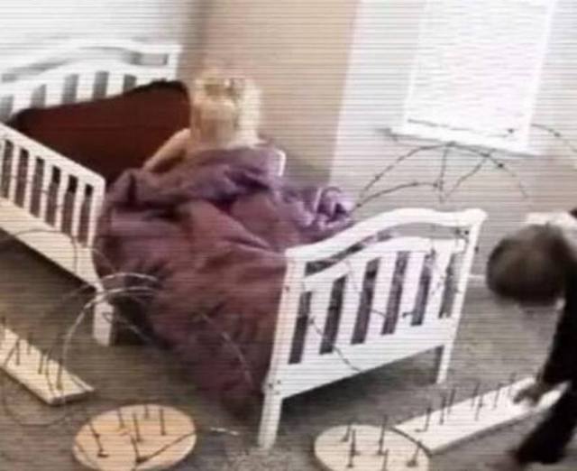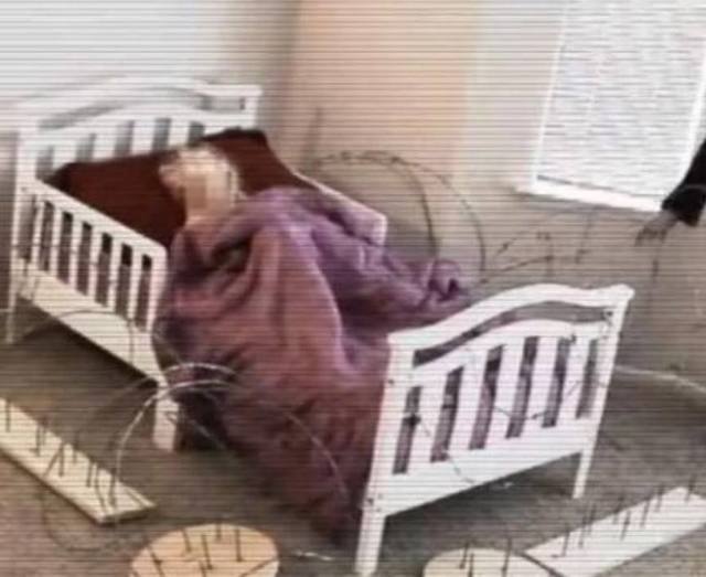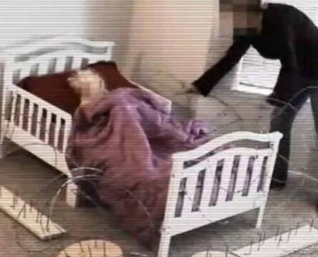 這名保姆為了不讓這熊孩子到處亂跑,竟找來木板上面釘上鐵丁,放在孩子的床邊,隨后用鐵絲網(wǎng)將孩子團(tuán)團(tuán)圍住,防止熊孩子下床亂跑!當(dāng)孩子的爸爸看到監(jiān)控錄像,嚇得立馬報(bào)警。