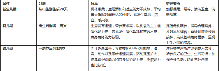 要成為專業(yè)的月嫂護理人員,對于嬰幼兒年齡分期以及各個特點,需要掌握。嬰幼兒處于不停的生長發(fā)育階段,根據嬰幼兒生長發(fā)育的不同階段的特點,可將嬰幼兒期細分為:新生兒期、嬰兒期、幼兒期。嬰幼兒年齡分期以及各個階段的特點如下表: